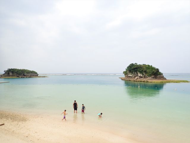 そして、嘉手納のビーチでは、外人さんの親子が海水浴?!Σ(゚д゚;)