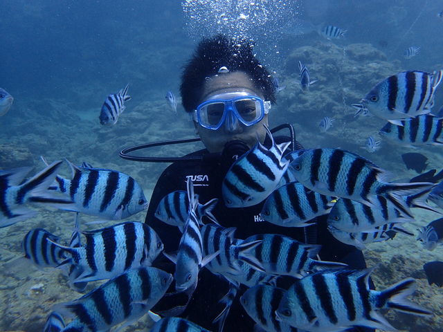 まずは、耳抜きをしている最中から寄ってきていたお魚さんたちに餌付けタイム☆