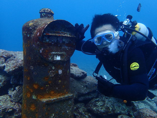 そして、丁度1年前に設置された「水中ポスト」の前で、記念撮影☆