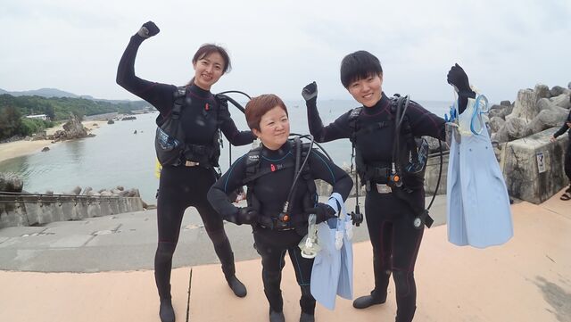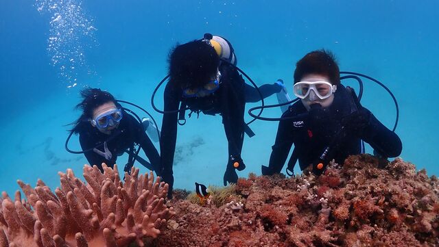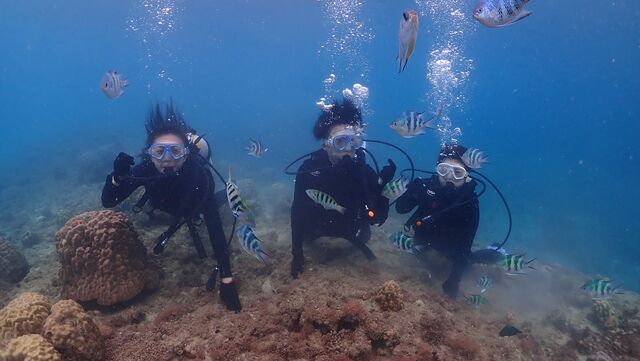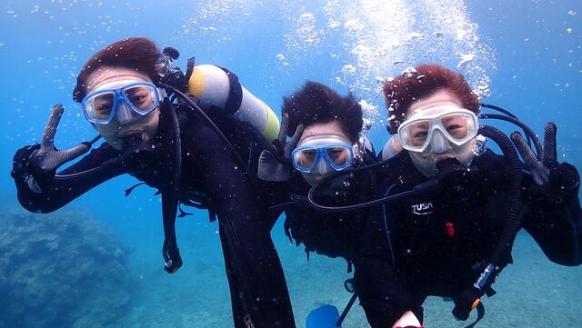 珊瑚礁体験ダイビングへご参加いただいたのは「優香さん&ひとみさん&絵美さん」です☆