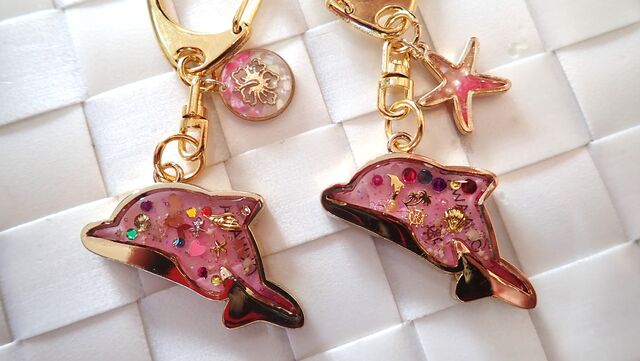 ピンクのイルカさんキーホルダーの中に、たっぷりのパーツを詰め込んでくれました✨