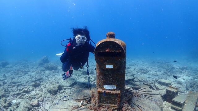 今更ですが、水深8mと20mの所にあるポストを見たり(笑)