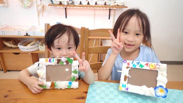 エマちゃんはOKINAWAの文字をランダムに貼り付けて、とってもオシャレさん( ´艸`)♡