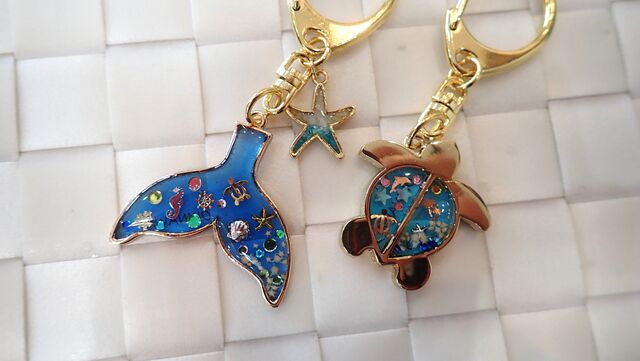 どちらもキラキラで可愛らしいオリジナルキーホルダーの完成です☆↓↓↓↓↓