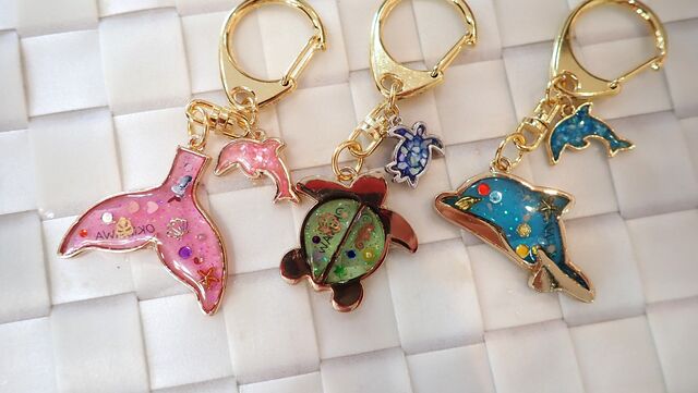 お子様はママと一緒にUVレジンでオリジナルキーホルダー作り♪